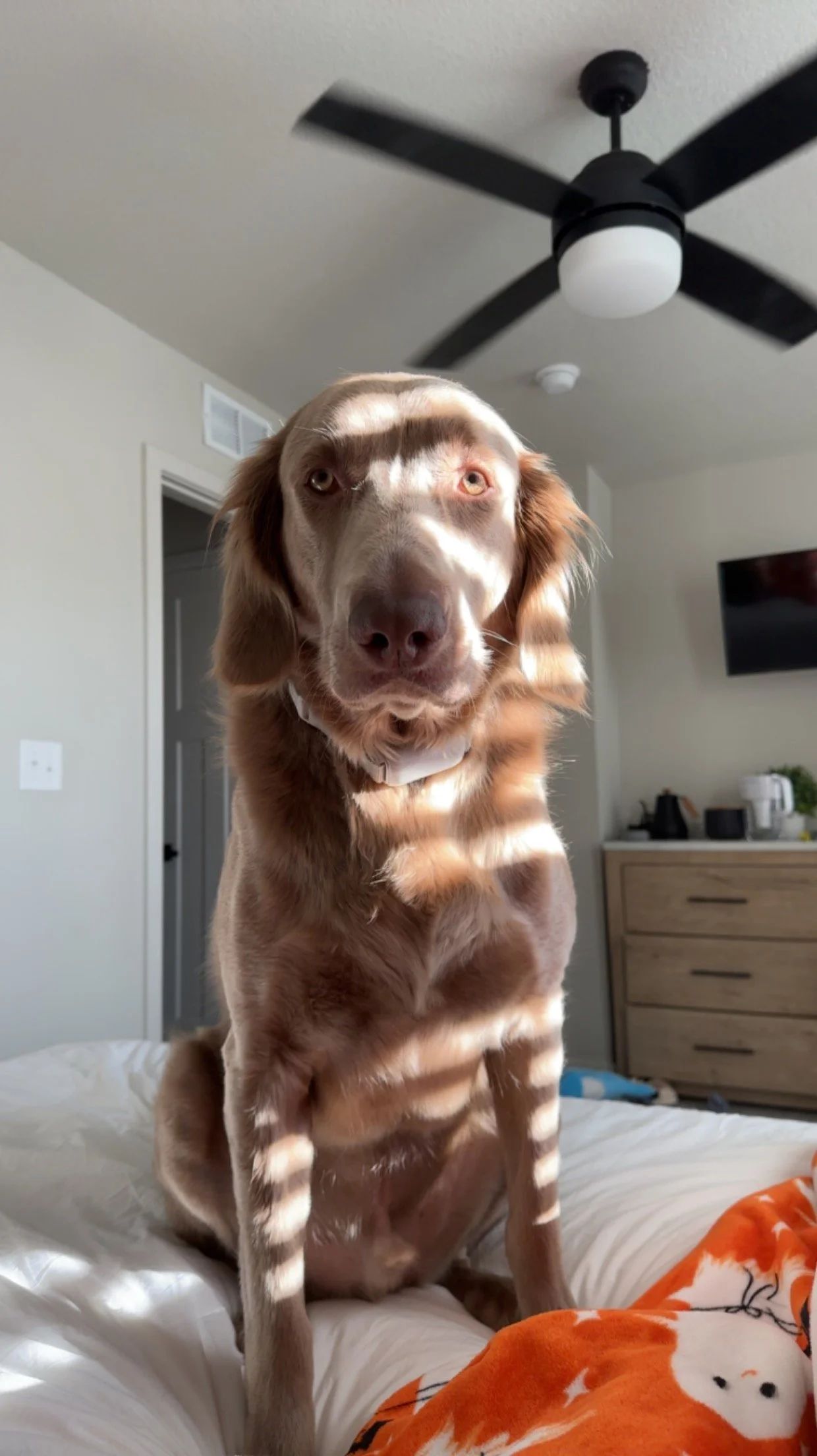 Baylor is a long-haired Weimaraner most notable for squeaking in the background of calls.